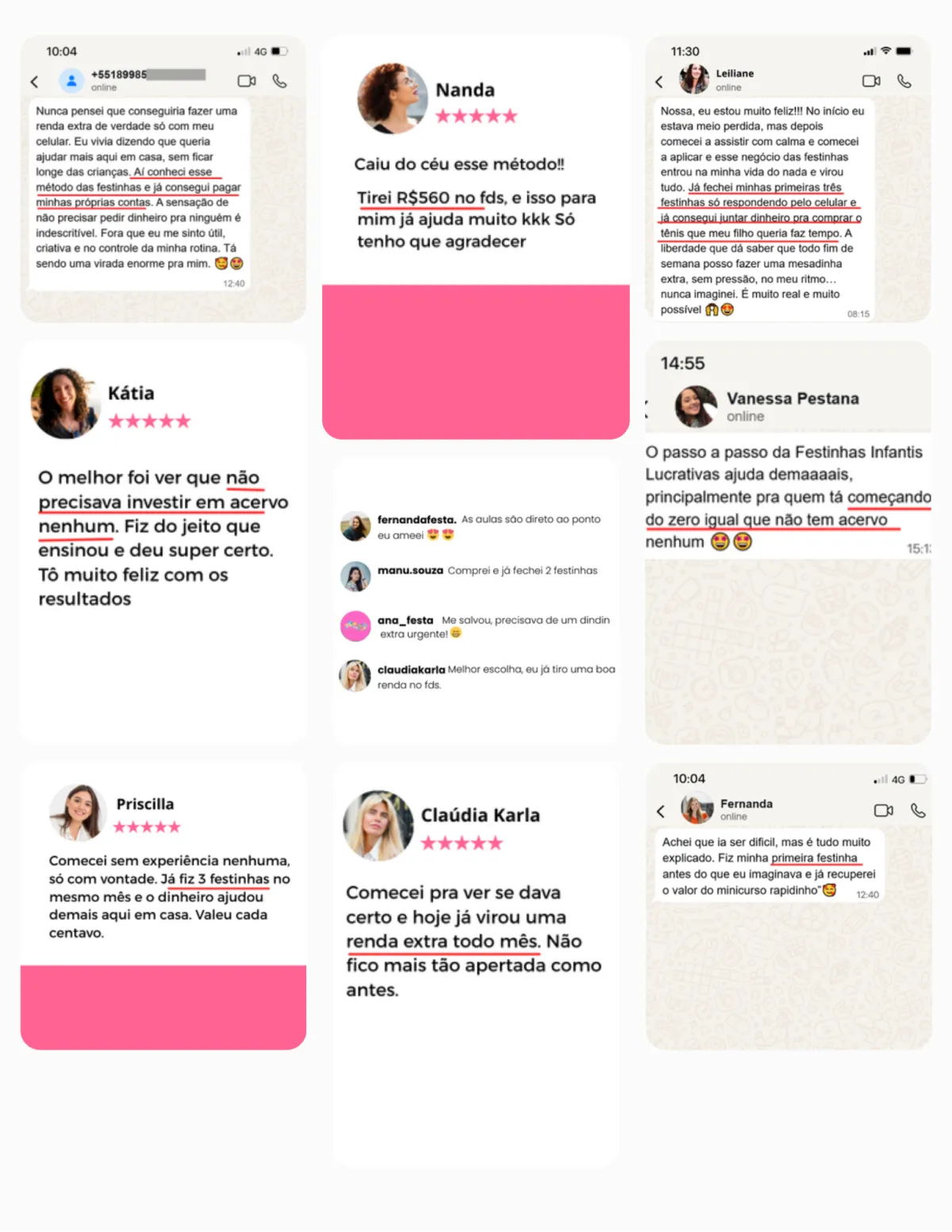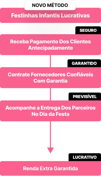 É uma nova metodologia para ganhar dinheiro com festas infantis simples, que te permite faturar de R$2 Mil a R$3 Mil por mês, garantindo uma renda extra, mesmo começando do zero.